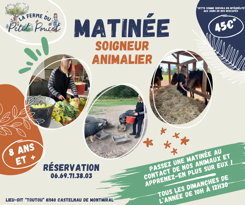 Réservez votre place au 06 69 71 38 03 pour passer une matinée à soigner les animaux de la ferme. Sous le regard attentif de Delphine.